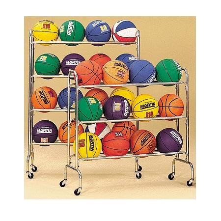 Constructed of heavy plated steel tubing with four non-marring swivel casters. Extra-wide base helps prevent tipping. Balls sold separately.